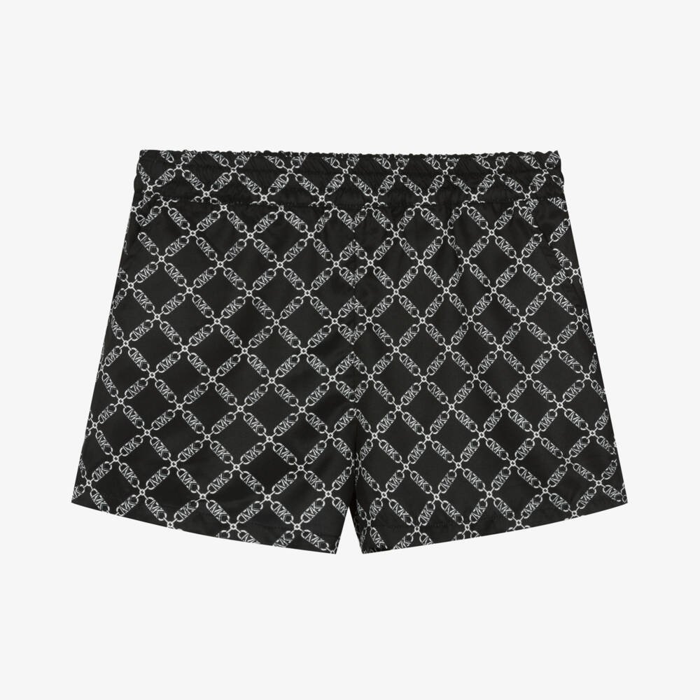 Inspired by the womenswear collection, these black shorts for teen girls are from Michael Kors Kids. Chic and stylish, they are patterned in a white MK monogram chain design, with side seam pockets. Made from silky satin twill, they are finished with an elasticated waistband and a soft viscose lining.