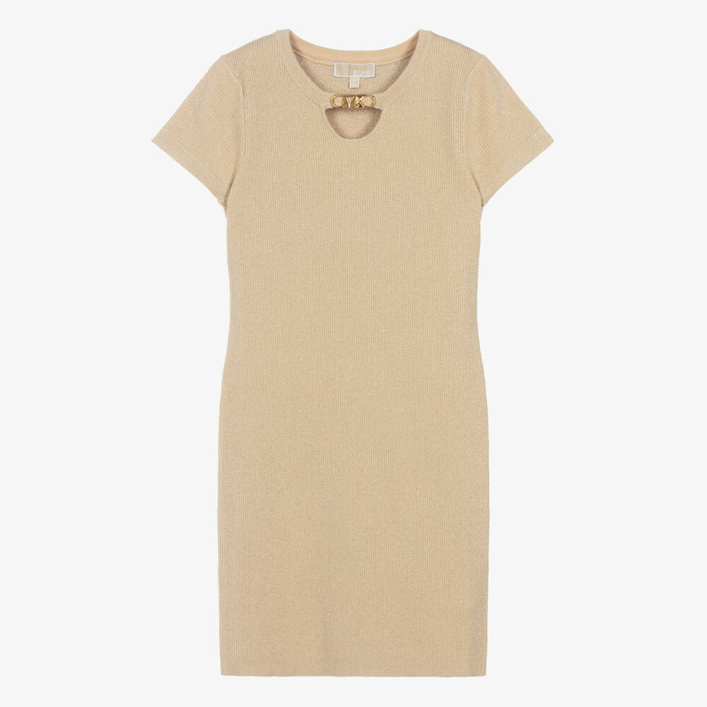 Cool, stylish and comfortable to wear, this gold dress for teen girls is by American brand Michael Kors Kids. Ideal for a party, or simply just making the everyday less ordinary, it glitters with gold thread and has a golden logo badge on the cut-out neckline. With neat, short sleeves, it is knitted in a ribbed viscose blend.