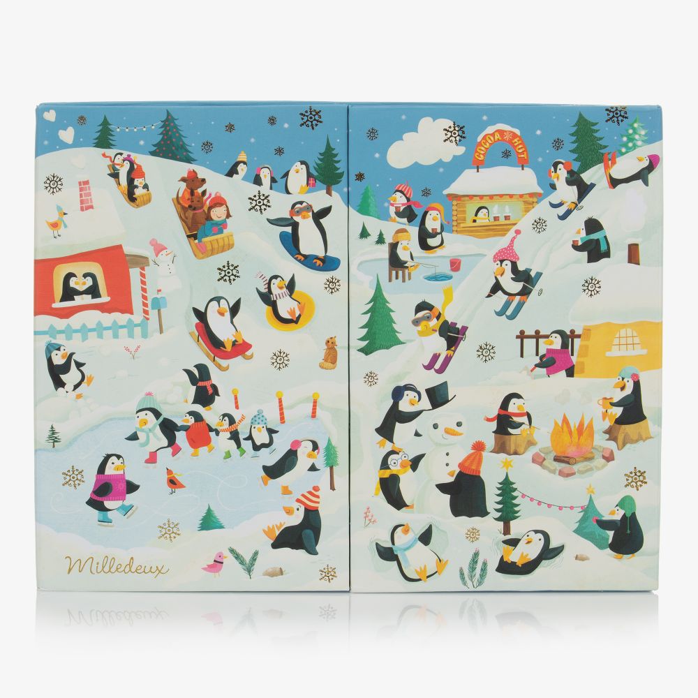 A lovely way to count down to Christmas, a hair accessory advent calendar for girls from Milledeux. This collection of hair clips and hair bands is made from certified Oeko-Tex ribbon and set on nickel-free metal clips, designed to be gentle on delicate hair. The set comes in a beautifully decorated keepsake box patterned with penguins enjoying the snow. The box opens to reveal twenty four numbered drawers, each containing an elastic with ribbon bow or a penguin hair clip.