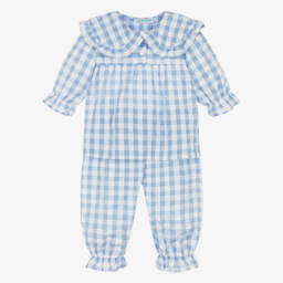 A lovely pink and white check pattern adds a timeless charm to these traditionally styled long pyjamas for girls by Mini Lunn. Made in soft cotton, the top has a large frilled collar and gently elasticated cuffs. It fastens with buttons on the front. The matching trousers have a drawstring waist for comfortable wear and elasticated, frilled cuffs.