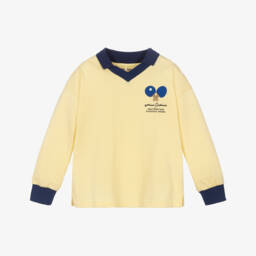 Casual ivory top for girls by Mini Rodini, featuring a playful red heart pattern. Made from softly ribbed, organic cotton jersey, this comfortable top has a rounded neckline and long sleeves with pretty flared cuffs adding a touch of flair.