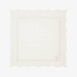 A lightweight grey shawl for baby boys and girls by Spanish designer Minutus. Finely knitted with a delicate pattern, it has gently scalloped edges. Lovely for wrapping and presenting baby, it can also be used in the nursery or stroller.