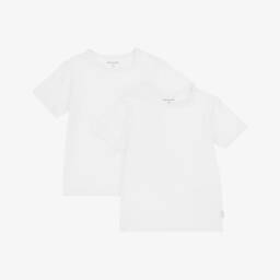 Pack of two white T-shirts for boys and girls by Minymo, made in soft cotton jersey. Great for layering or wearing alone, these practical tops are casually styled with a classic crew neck.