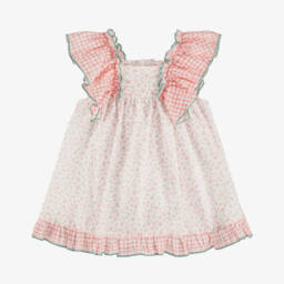 From Spanish brand Miranda, a sweet sailor dress set for baby girls in white and blue. Made in lightweight cotton poplin, the nautical-style dress is patterned with red anchors and comes with matching knickers to complete the look.