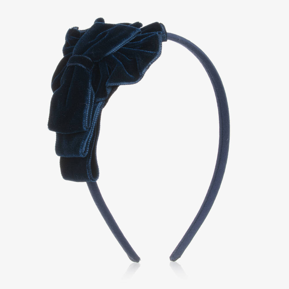 Add a stylish finishing touch to her outfit with this navy blue hairband for girls by Spanish brand Miranda. The flexible band is covered in soft fabric, embellished with an elegant velvet rosette and bow design on one side.