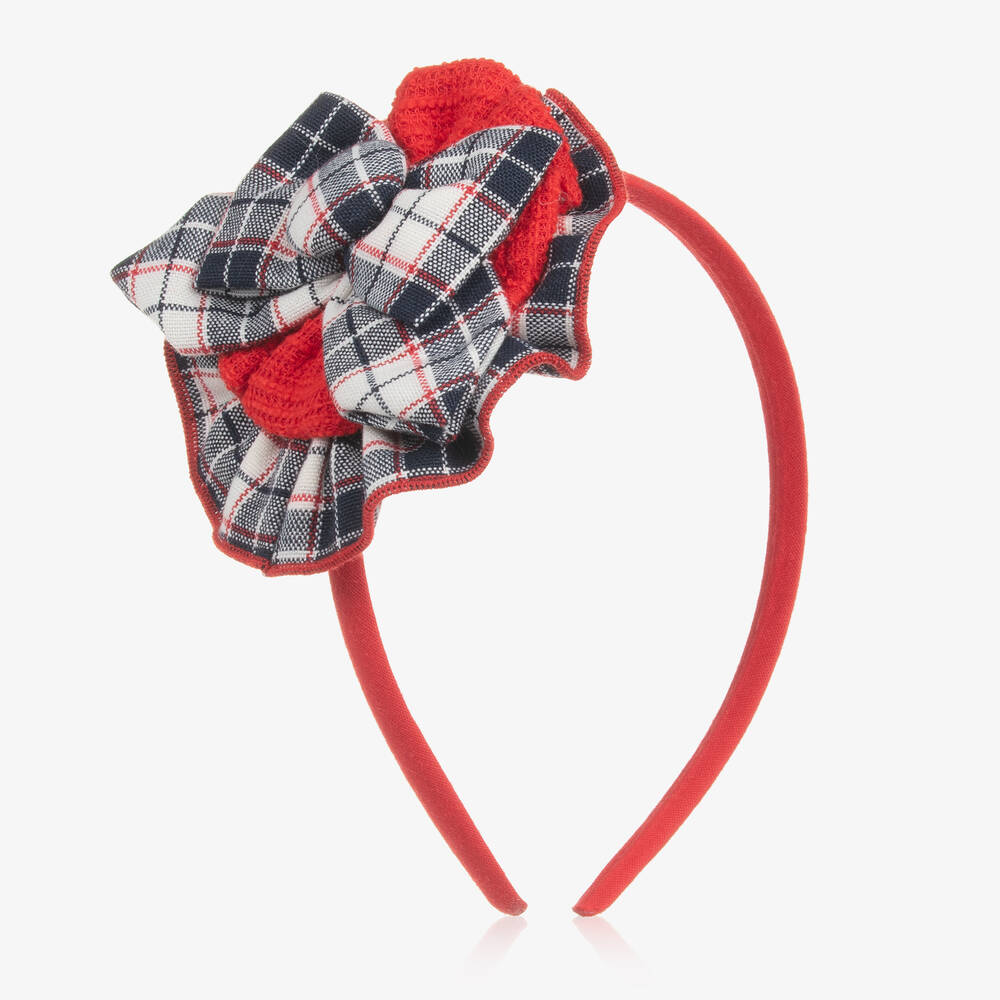 Girls Red & Blue Tartan Rosette Hairband