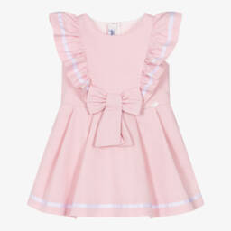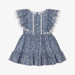 Pretty yellow dress for girls by Miranda, with sweet lemons and contrasting gingham trims. This romantic style has puffed sleeves, a layered skirt, and a gorgeous sash across the waist. It has a cascading ruffle on the back with a charming bow detail, beautifully covering the concealed zip which fastens the dress.