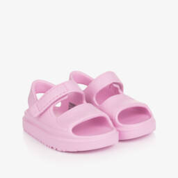 Luxury sandals for girls by Italian brand Missoni, made in beautifully soft leather. They feature the designer's multicolour zigzag pattern in shades of yellow, blue, orange and pink. This classic style has adjustable buckle-fastening straps, a moulded footbed lined in suede leather, and a non-slip rubber sole.