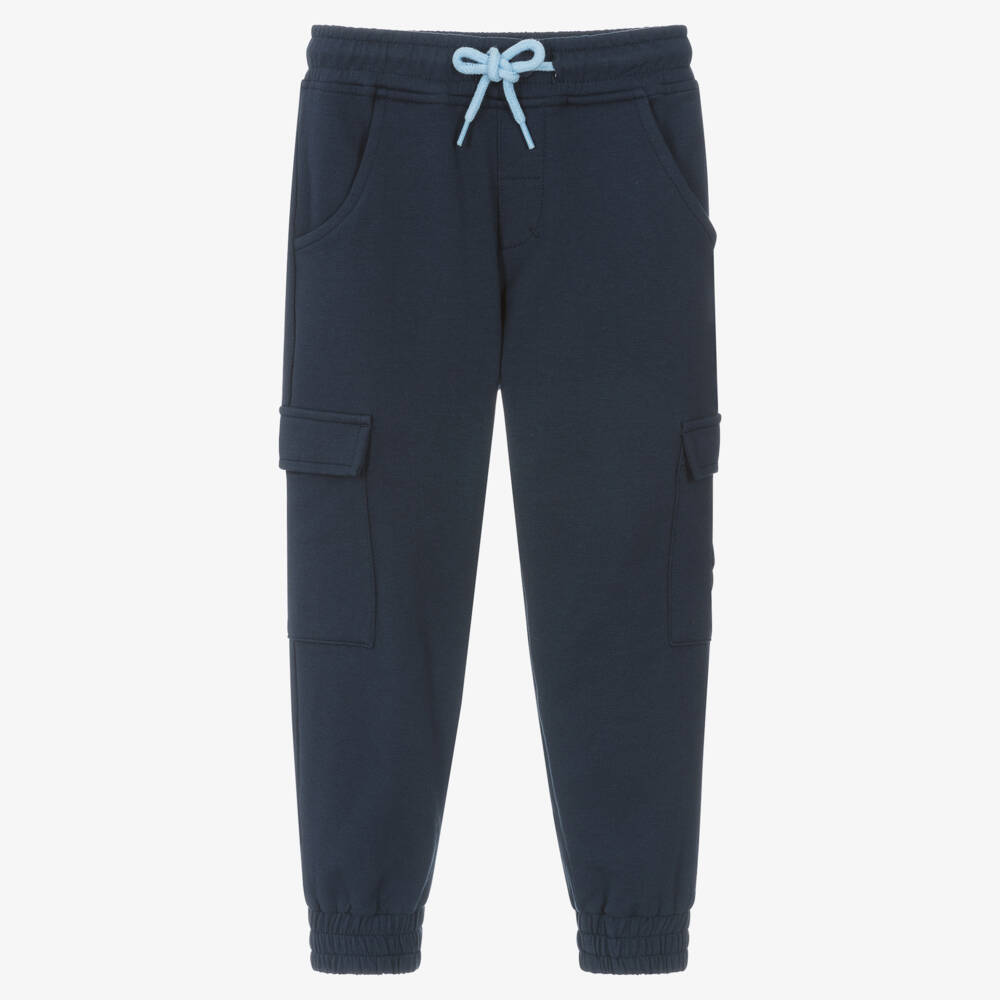 Boys Navy Blue Cotton Cargo Joggers