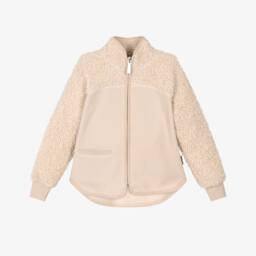 A casual blue fleece zip-up top for boys and girls by Molo, with super soft teddy fleece detailing for an extra cosy feel. Ideal for layering on cooler days, it has a single pocket on the front, ribbed cuffs with thumb holes, and an easy-to-use zip fastening.