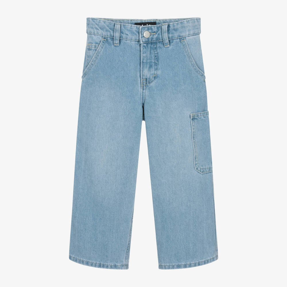 With a casual relaxed fit, these blue light wash jeans for boys and girls are by Molo. Made from smooth denim, they are designed with plenty of pockets for a cool and active style. Fastening with a zip and popper on the front, they have an adjustable waist on all sizes for added comfort.