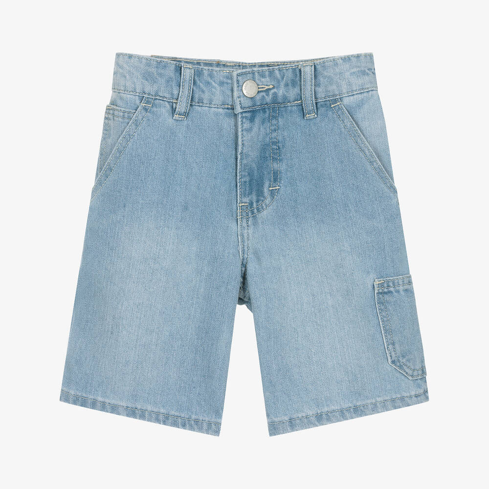 Designed by Molo, these blue light wash shorts for boys and girls are made from smooth cotton-rich denim. Great for a casual style, they are designed with plenty of pockets for a practical and adventurous style. Fastening with a popper and zip on the front, they have and adjustable waist on all sizes for a comfortable fit.