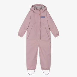 Boys navy blue snowsuit by Molo, designed to provide warmth and protection during outdoor adventures. This durable, waterproof and windproof snowsuit has a soft fleece lining and is warmly padded. There is a detachable hood and reflective trims for improved visibility. The adjustable elasticated stirrups ensure a secure fit over boots, ideal for skiing or playing in the snow. It fastens with a zip, for easy dressing and poppers for extra protection against the cold.
