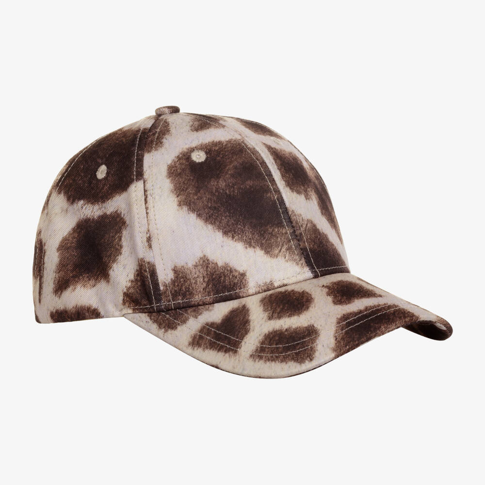 Chic beige and brown cap for girls by Molo, with a giraffe pattern. Made from smooth twill, this classic six panel hat has an adjustable velcro strap on the bag for a secure fit.