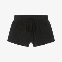 Soft, silky swim shorts for girls by Molo, in black with pretty, curly-edged cuffs. With a UPF50+ rating, they have an inner lining for comfort and an elasticated waistband with a decorative, rope-style drawstring.
