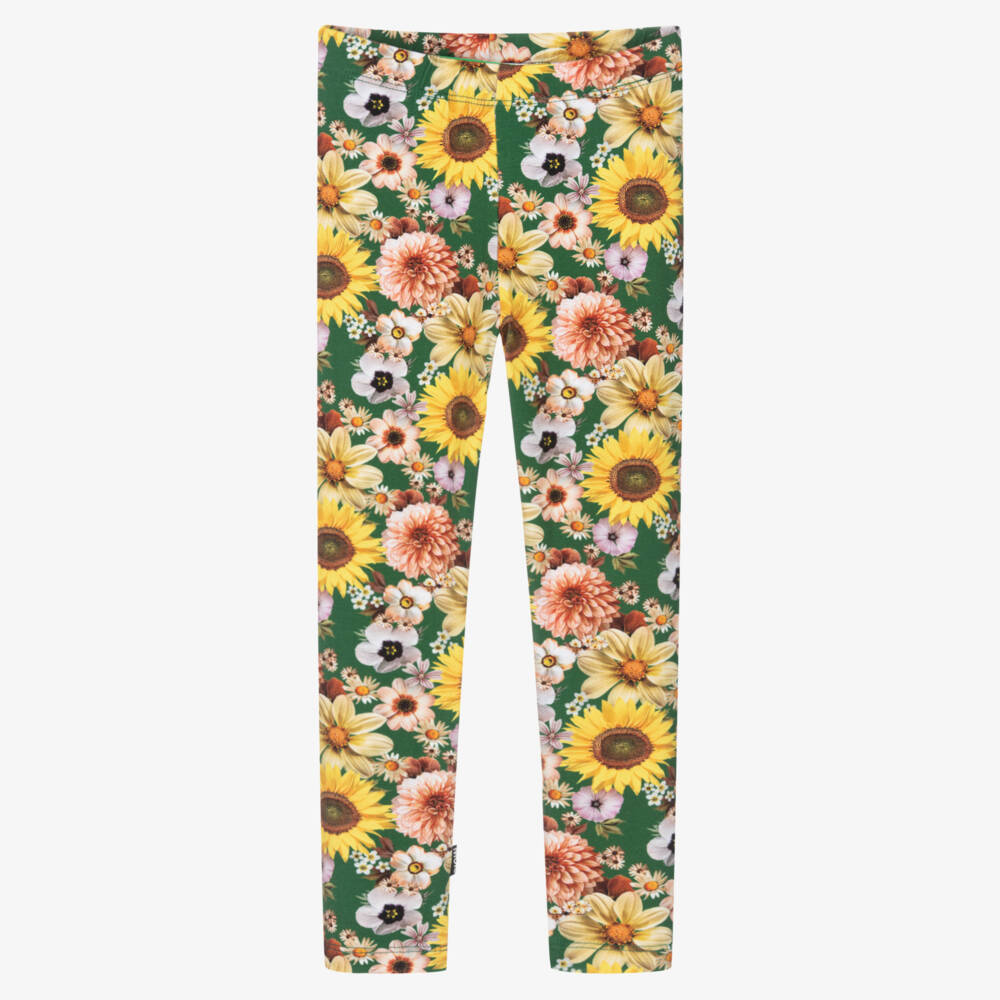 Girls Green Floral Cotton Leggings