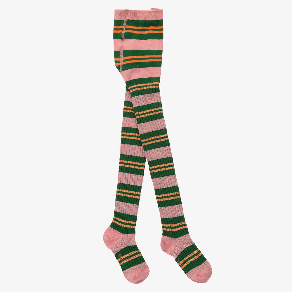 From Danish brand Molo, these pink and green striped tights are for girls. Knitted in soft cotton blend, they have metallic pink and orange stripes for a fun finish.