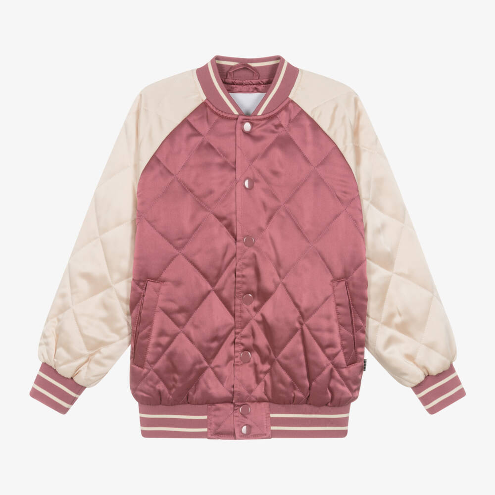 Girls Pink Quilted Satin Bomber Jacket