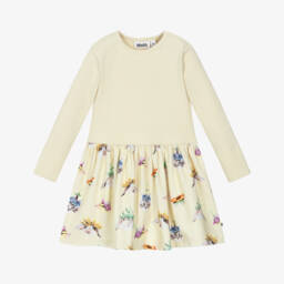 Stylish dark red organic cotton dress for girls by Molo, with oversized puffed long sleeves. Made in fine needlecord for a beautifully soft feel, this lovely dress is designed with a full skirt, a relaxed fit bodice and elasticated cuffs. A concealed zip fastens on the back for a neat finish.
