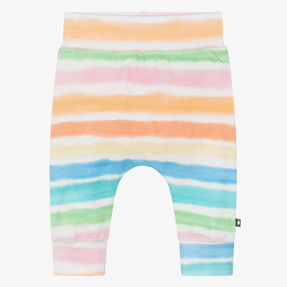 Colourful joggers for little boys and girls by Danish brand Molo, with rainbow stripes. Just right for casual days, they are made in soft, stretchy organic cotton jersey with comfortable, ribbed trims.