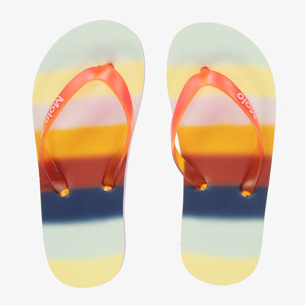 Teen girls flip-flops by Molo, with a rainbow print on the insole. Ideal for the beach or pool, they have logo-branded pink rubber straps and non-slip rubber outer soles.