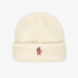 Fluffy faux fur hat for girls by Moncler Enfant. Designed in a bucket style, in ivory fuzzy synthetic materials, this winter warming hat has a cotton lining and a tonal grosgrain logo patch embroidered at the side.