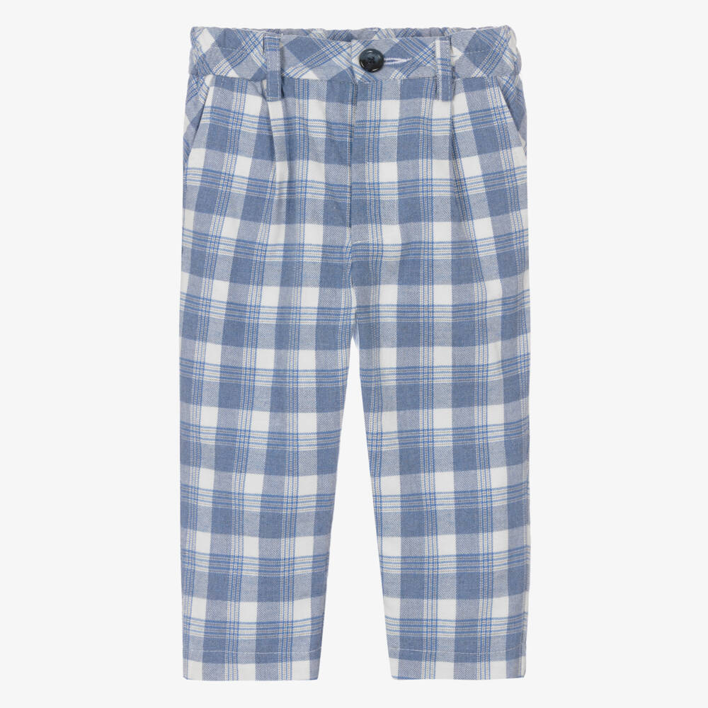 Boys Blue Checked Cotton Trousers