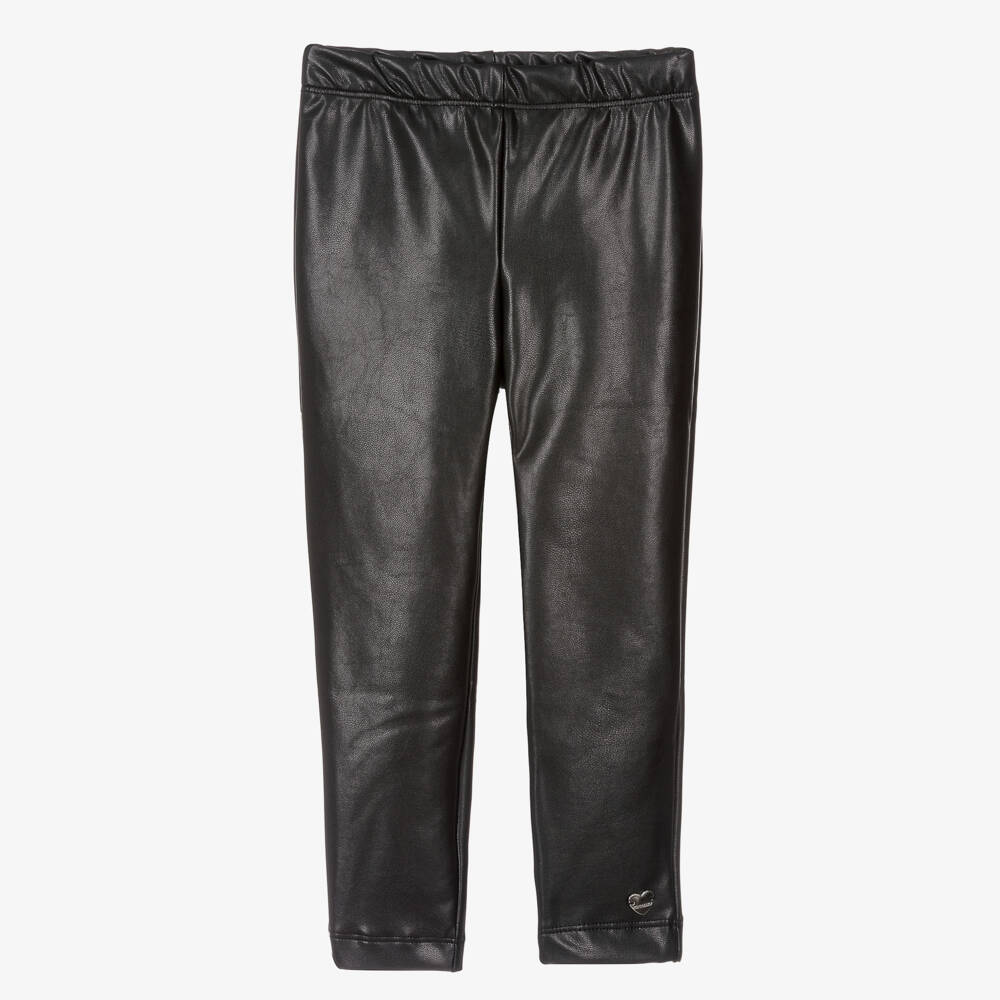 Girls Black Faux Leather Leggings