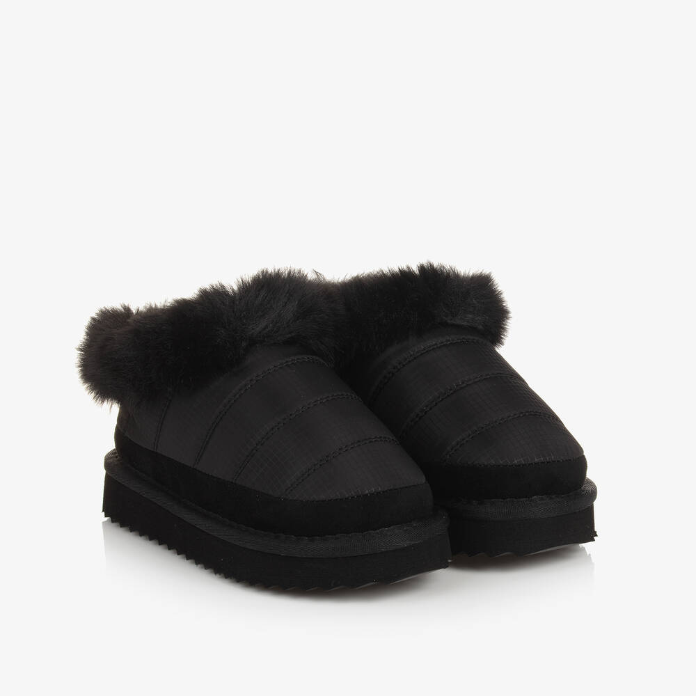 Girls Black Ripstop & Faux Fur Slip-On Boots