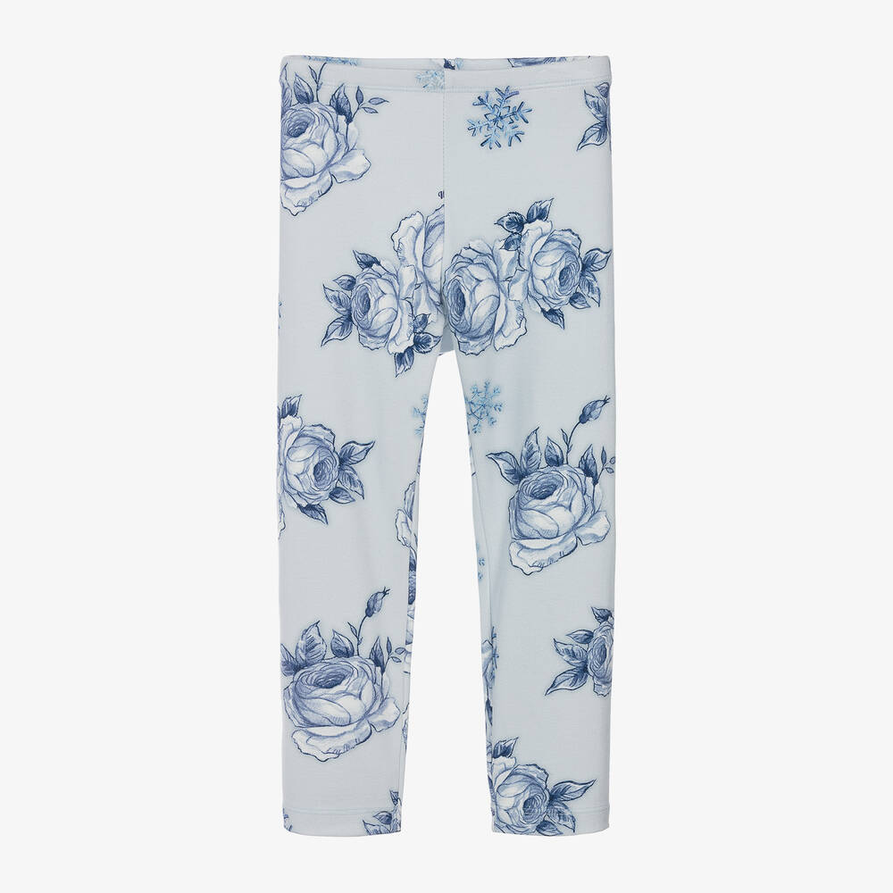 Girls Blue Viscose Floral Leggings
