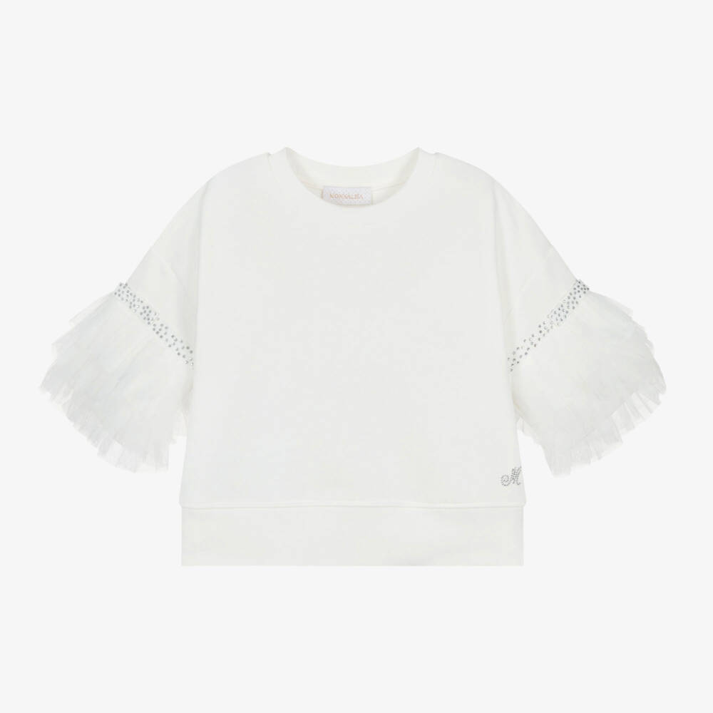 Girls Ivory Diamanté Tulle Sweatshirt