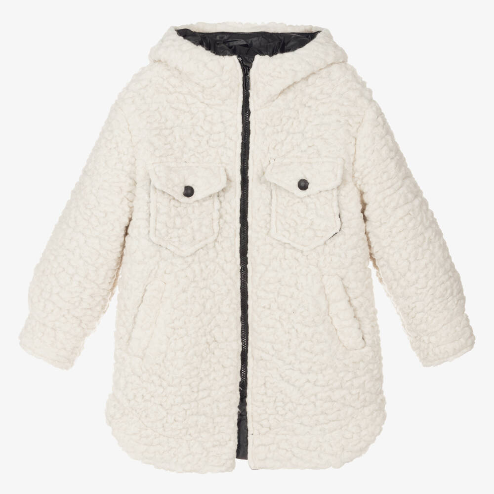Girls Ivory Sherpa Fleece Hooded Coat