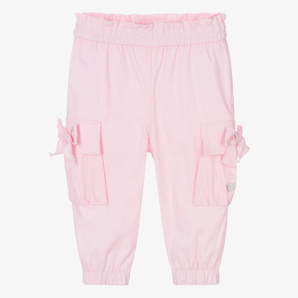 Girls Pink Cotton Bow Cargo Trousers