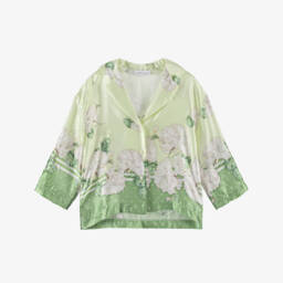 Lovely pale pink satin shirt for girls by Monnalisa, with a beautiful butterfly and logo print. Made in super soft viscose, it has a revere collar and a comfortable, relaxed fit.