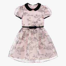 Girls pink and white cotton dress by Monnalisa is a charming addition to any wardrobe. Made from smooth poplin, it features a playful fruit print with frilled sleeves and a gathered waist for added volume and style.