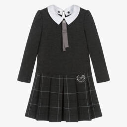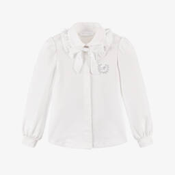 Girls silver handbag by Monnalisa, made in fine-grained metallic faux leather with a silver, diamanté-embellished logo plate on the side. Fastening with a zip, this stylish, heart-shaped bag has carry handles and a detachable chain strap for an alternative look.