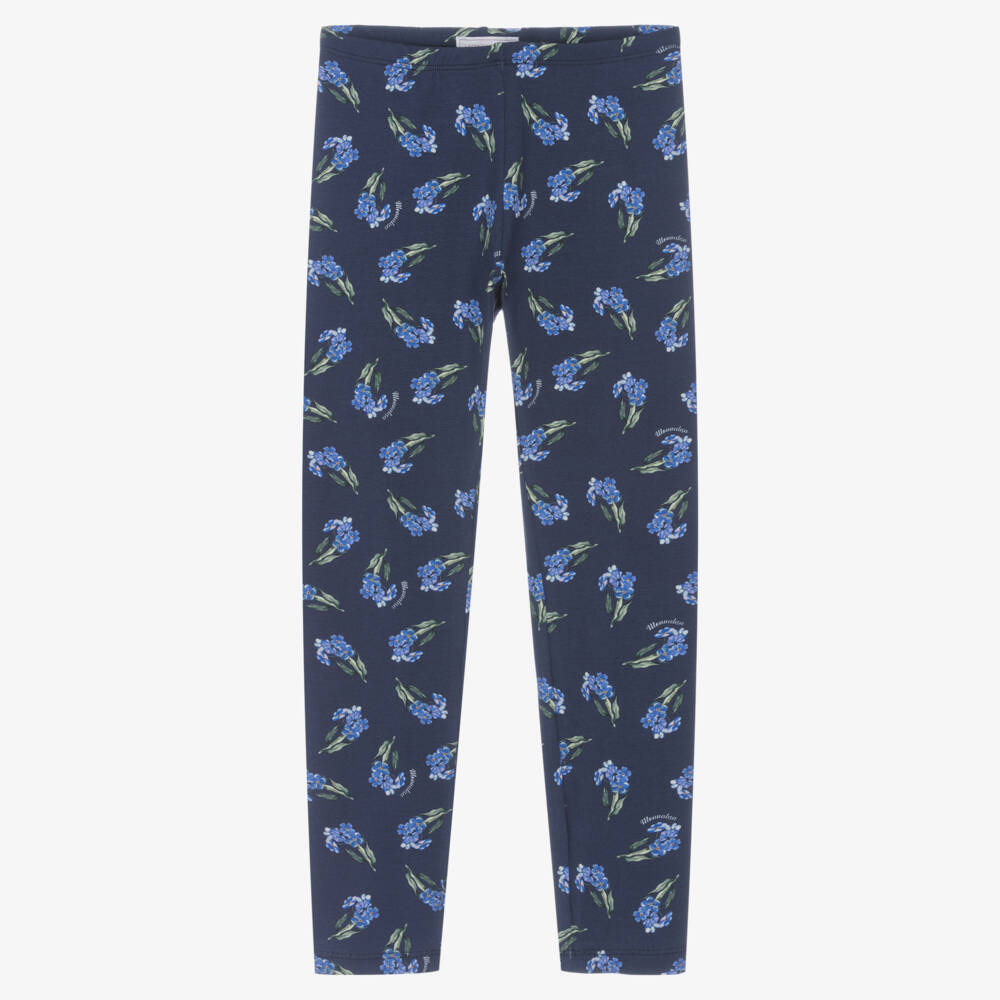 Patterned in pretty forget-me-not prints and subtle script logo detailing, these navy blue leggings for teen girls are by Monnalisa. Super soft and comfortable, they are made in stretchy cotton jersey.