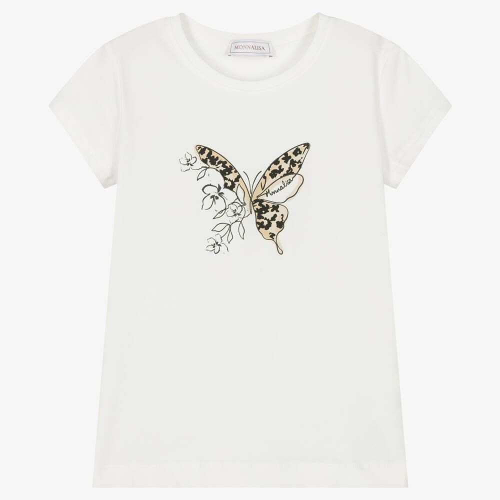 Teen Girls Ivory Cotton Butterfly T-Shirt