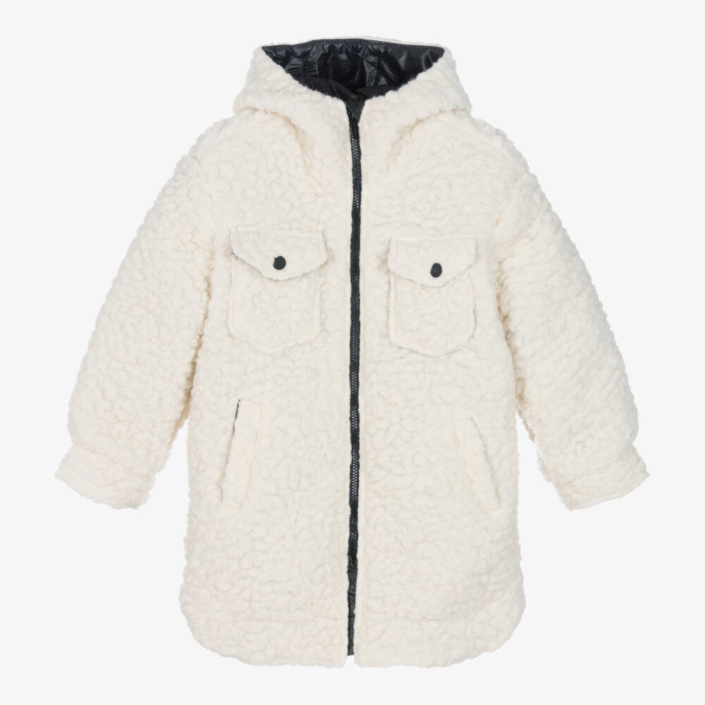 Teen Girls Ivory Hooded Fleece Coat