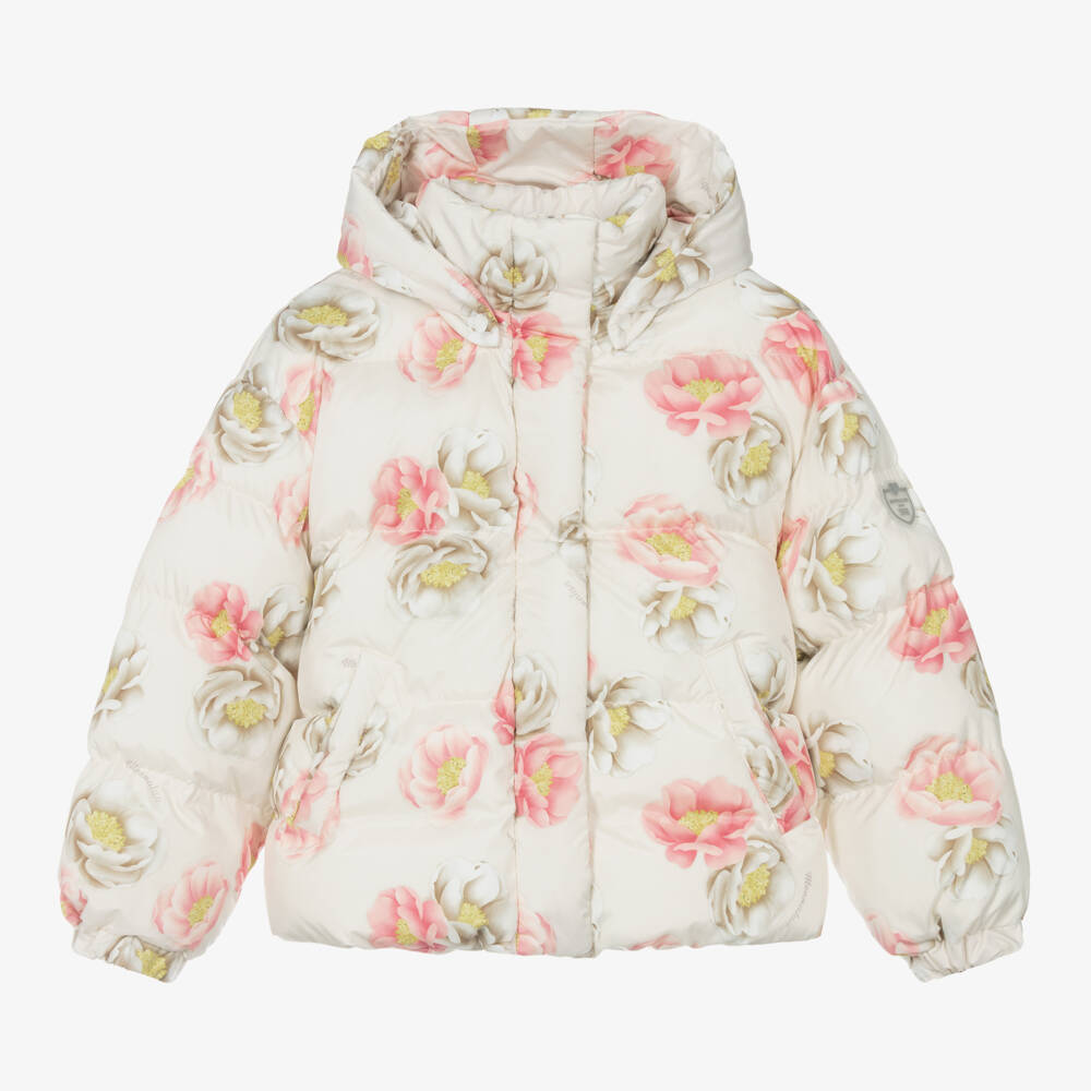 Teen Girls Ivory & Pink Floral Puffer Jacket
