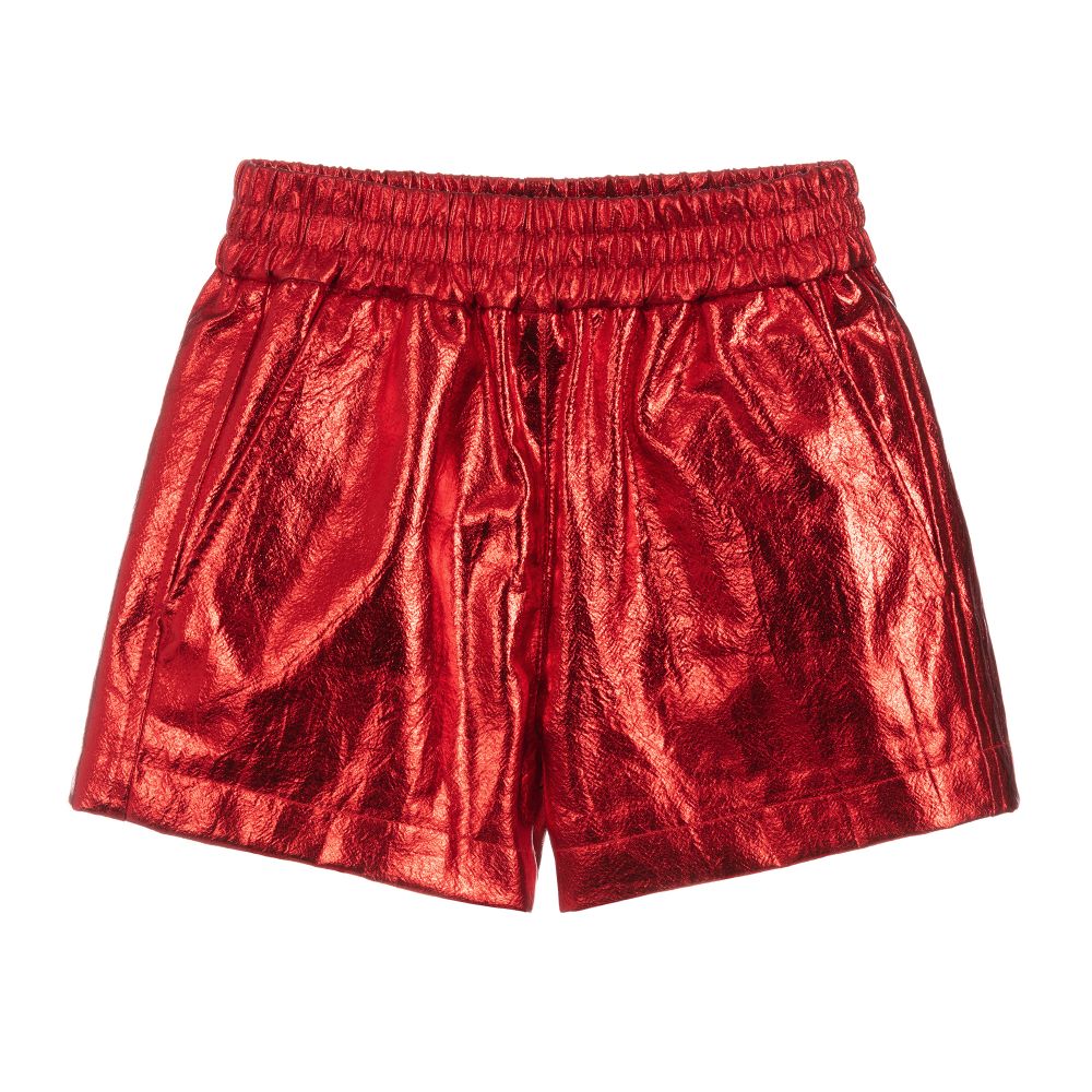 Teen girls metallic red shorts by Italian designer Monnalisa, with an embroidered logo on the back. They have an elasticated waistband and side pockets.