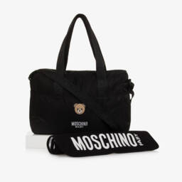 Grey changing bag by Moschino to add a touch of luxury to your outings with baby. Made in soft cotton jersey, it has a useful adjustable strap with logo detailing. There is a spacious main compartment and useful side pockets, and a matching changing mat for when you are out and about. The brand's signature Teddy Bear logo adds a distinctive designer finish.