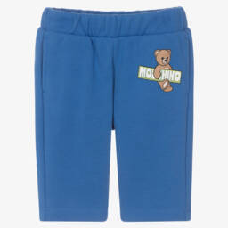 These grey marl joggers for boys and girls by Moschino offer both comfort and style. Made in soft cotton jersey with a cosy fleecy inside, they have the brand's signature Teddy Bear and black logo on one side for instant brand recognition. There are useful side pockets and an elasticated, drawstring waist for a great fit.