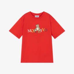 Bright yellow cotton T-shirt for boys and girls by Moschino, made in comfortable jersey. Great for designer style on days by the beach or pool, it has a bold white logo and swimming Teddy Bear emblazoned across the chest.