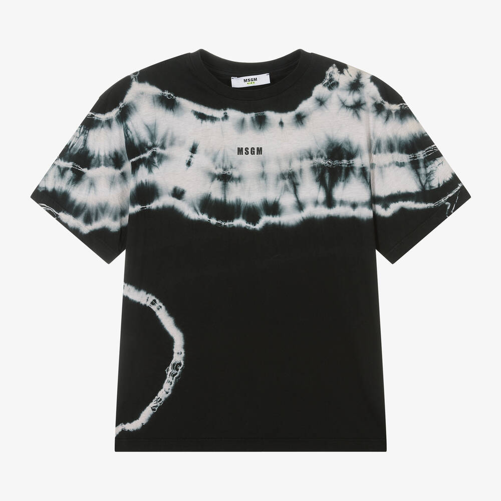 Black cotton T-shirt for boys by MSGM, with a cool tie-dye effect. Made in soft jersey, this casual style is stamped on the front with the brand's logo for designer appeal.