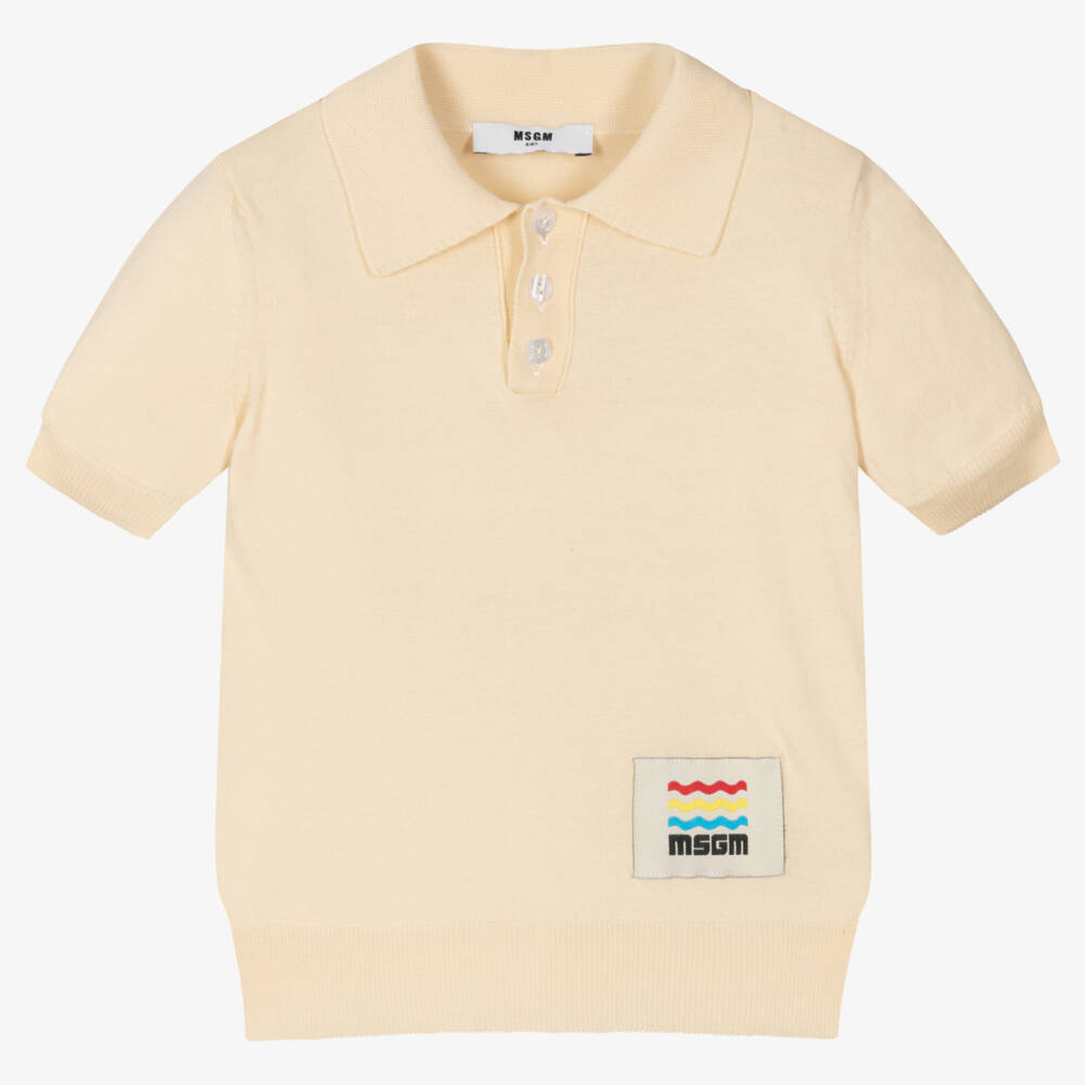 Light beige polo shirt for boys from MSGM. Knitted in soft cotton, it has a logo patch on the front and branded buttons.