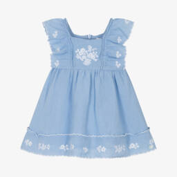 Girls Blue Cotton Shirt Dress With Long Sleeves