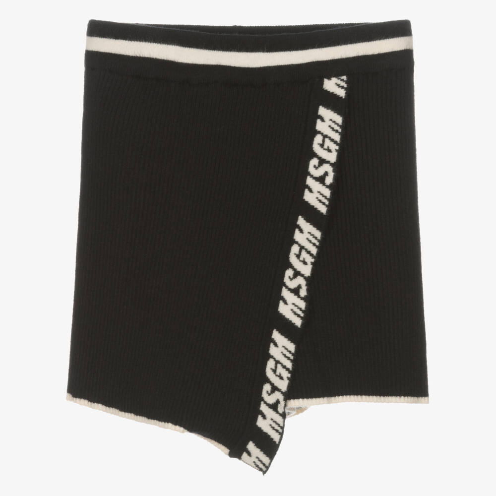 Designed by Italian brand, MSGM, this black ribbed skort for teen girls is made from a soft viscose-blend knit. Effortlessly cool, it has ivory jacquard logos along the edge of the front flap and matching stripe trims for a trendy look.