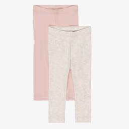Two-pack of leggings for baby boys and girls by NAME IT, in shades of beige marl and blue. Made from a blend of organic cotton and modal, these ribbed jersey leggings are super soft and stretchy, with elasticated waistbands for easy wear.