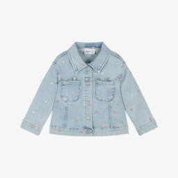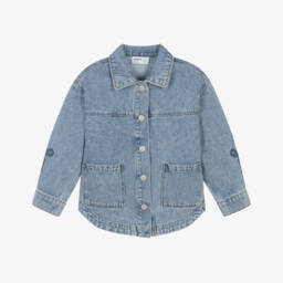 Navy blue jacket for girls by NAME IT, designed with a pastel yellow floral print. This gently padded jacket is made with sustainable viscose and is ideal for layering when it is cold. It has pale blue trims and two front pockets for carrying small essentials.